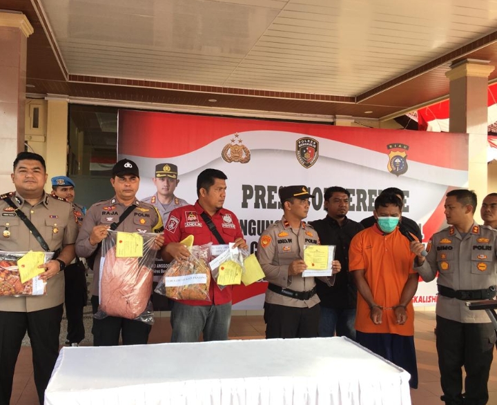 Kapolres Bengkalis AKBP Setyo Bimo Anggoro saat konferensi pers, Jumat (28/7) menjelaskan, Kasus di Desa Sungai Nibung Siak kecil, korban seorang ibu rumah tangga diduga gantung diri ternyata di bunuh oleh suaminya.