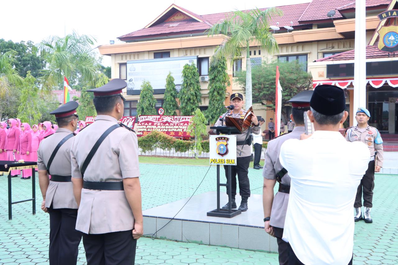 Wartautama.co (SIAK) – Kepala kepolisian resor ( Kaplolres ) Siak Polda Riau AKBP Asep Surjawadi, Sik, Msi Pimpin sertijab Wakapolres, satu Kabag dan Tiga Kapolsek Jajaran Polres Siak yang digelar di halaman Mapolres Siak, Senin ( 16/08/2023 ).