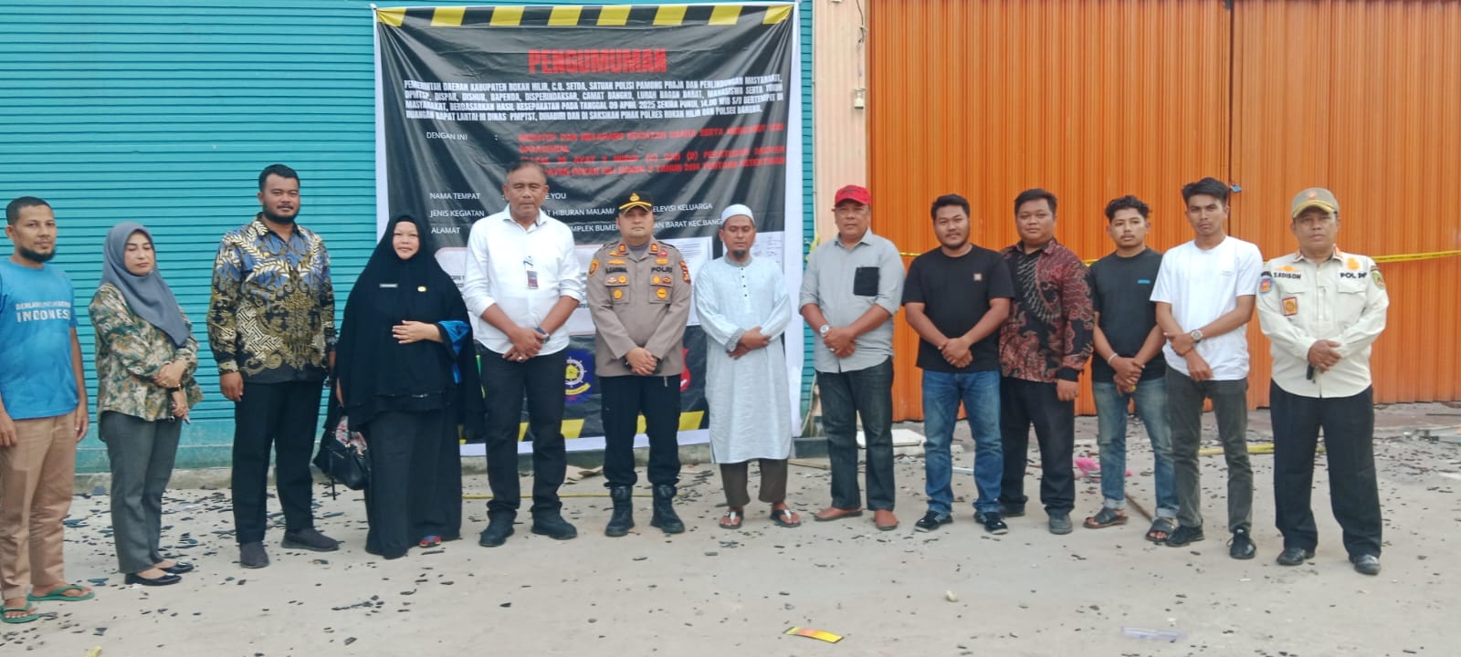 WARTAUTAMA.ID | ROHIL – Pemerintah Kabupaten Rokan Hilir melalui dengan DPMTSP, Dispar, Dishub, Bapenda, Camat Bangko, Lurah Bagan Kota, mahasiswa, serta masyarakat, secara resmi menyegel tempat hiburan malam KTV See You pada Kamis (10/4/2025) sore.