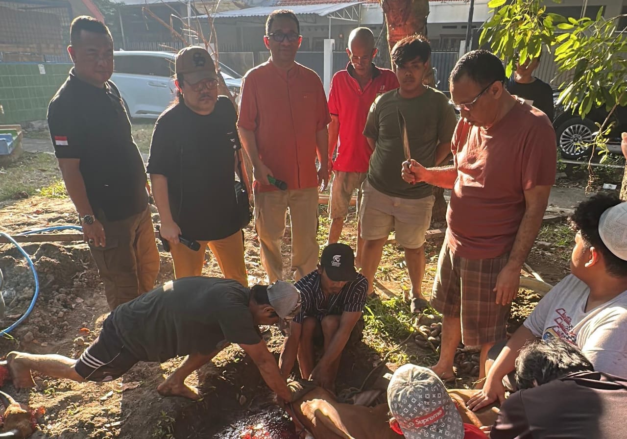 Sosok filantropis asal Surabaya ini berkurban dengan bendera ETOR Productions bersama komunitas Asik Hidup Damai (AHD) Saklawase bertempat di Lapangan Basket Taman Listia Jl. Puspita 4, Surabaya, Sabtu (7/6/2025). Saat penyembelihan kurban disaksikan langsung oleh Wakil Walikota Surabaya Ir. Armudji bersama Edy Torana.