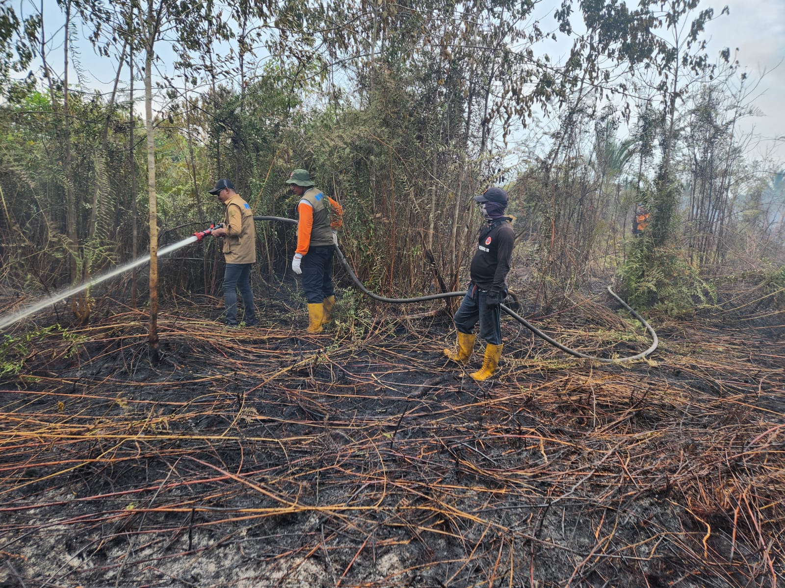Terlihat Kalaksa M. Khardafi memantau lokasi karhutla dan sekaligus melakukan pendinginan pasca kebakaran dan sekaligus menjenguk tim BPBD yang sudah12 hari di lokasi, serta berkordinasi dengan TNI/ POLRI yang berada dilokasi karhutladi Desa Tanjung Perananp Kecamatan Tebingtinggi Barat.