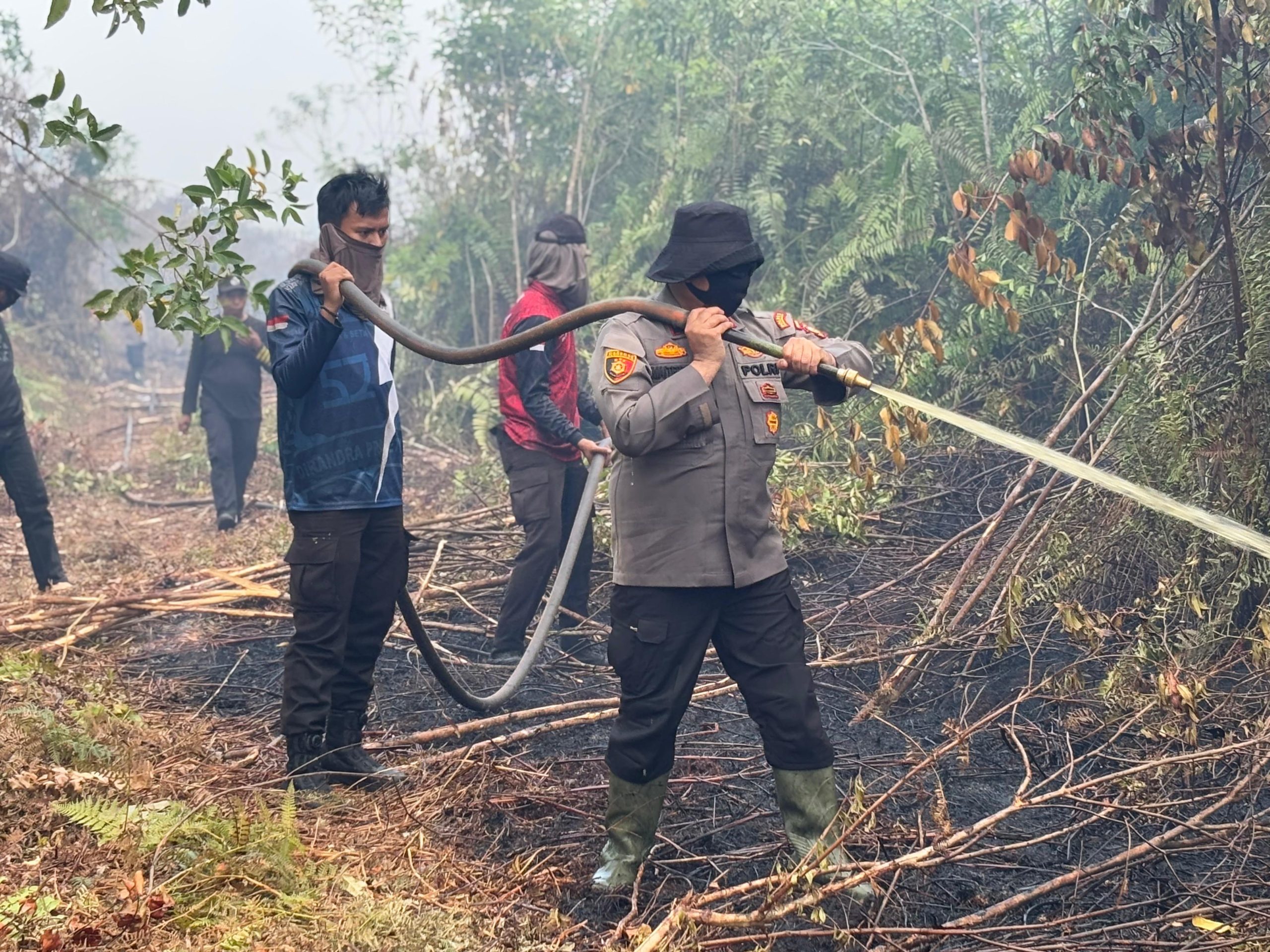 Kapolres melalui wakapolres Kompol Maitertika SH MH turun langsung dalam proses pemadaman api, didampingi Bhabinkamtibmas dan perangkat desa melakukan sosialisasi dan memberikan imbauan kepada masyarakat agar tidak melakukan aktivitas pembakaran lahan, serta melaporkan jika melihat titik api